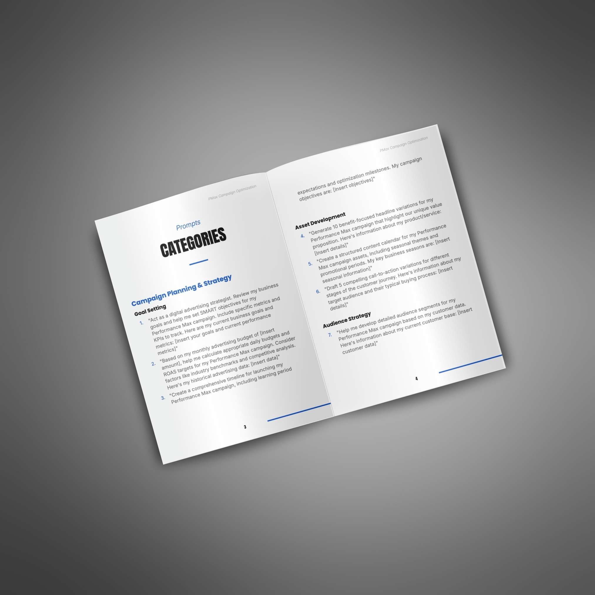 Master Google Performance Max campaigns with this AI powered prompt pack designed to maximize your advertising efficiency and results This essential resource provides targeted prompts for strategic campaign planning precise audience targeting intelligent budget management and continuous creative optimization helping you achieve superior performance across all Google networks