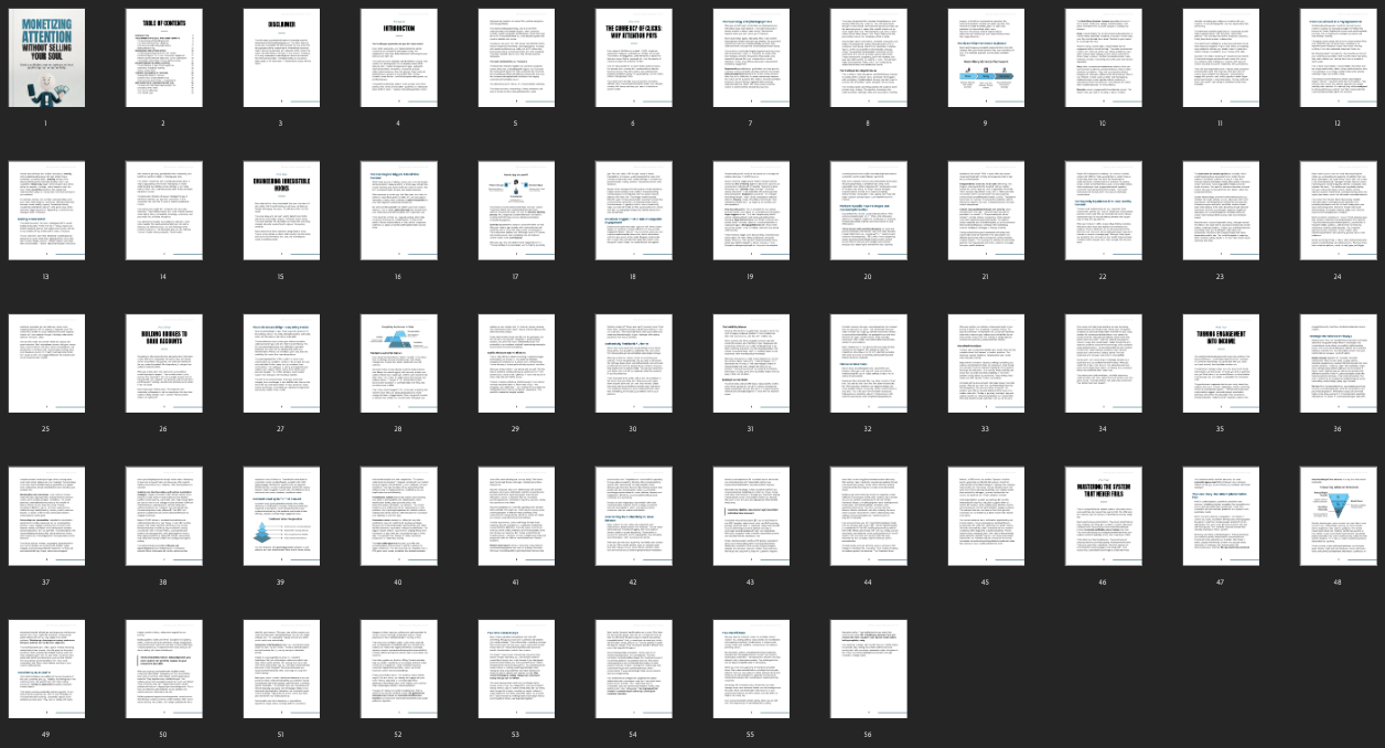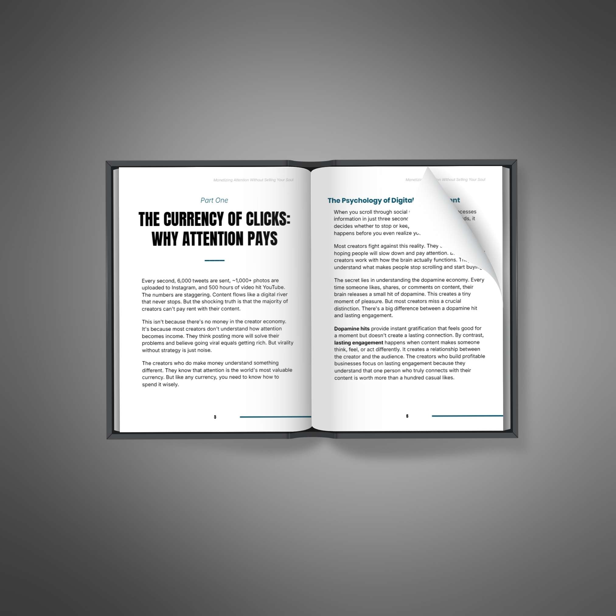 Stop struggling to make money from your content without feeling like you’re selling out. Discover how to turn attention into a sustainable income while keeping your audience’s trust. This ebook provides a proven system for capturing attention, building genuine connections, and monetizing your platform in a way that feels honest, aligned, and completely authentic.