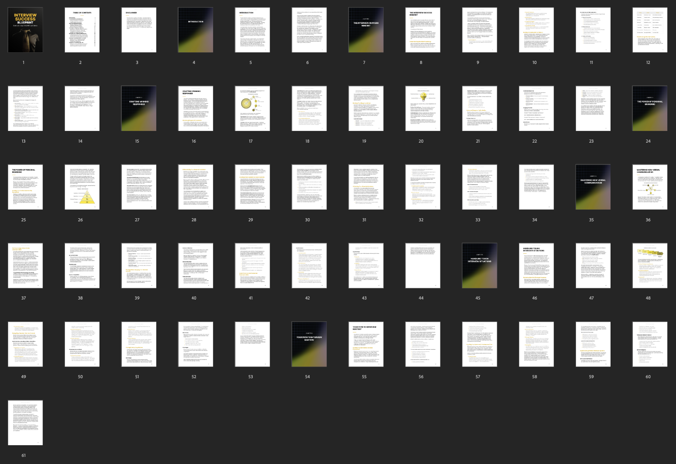 Unlock your potential and land your dream job with this ultimate guide to interview mastery. This ebook provides a proven step by step system to transform your interview performance boost your confidence and effectively communicate your unique value. You will learn to answer any question with clarity handle salary negotiations and build a personal brand that makes you the standout candidate.
