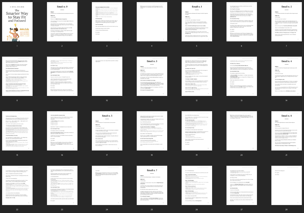 Ditch the burnout and unlock sustainable success with this done-for-you email course. Your customers will learn a simple system to stay fit, focused, and energized without extreme workouts or hustle culture, building healthy habits that fit any busy schedule.